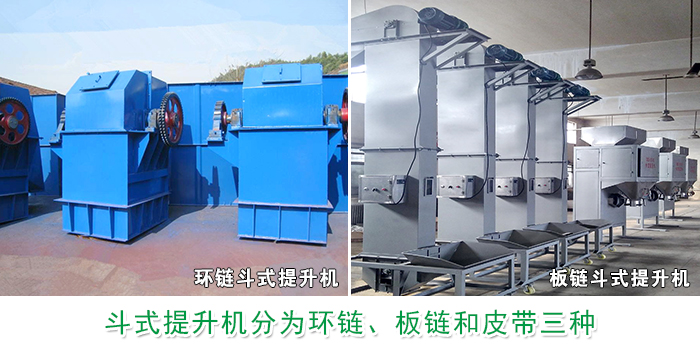 斗式提升機(jī)分為環(huán)鏈、板鏈和皮帶三種,根據(jù)所提升的物料選擇的料斗設(shè)計不同,其外形設(shè)計內(nèi)部配置是不同的,環(huán)鏈?zhǔn)竭m用于輸送粉狀、小塊狀的物料,板鏈?zhǔn)竭m用于中、大塊和有磨琢性的物料,皮帶式適用于垂直輸送粉狀、且磨琢性較小的散狀物料,選擇不同種類的提升機(jī)造成價格上的差異化。