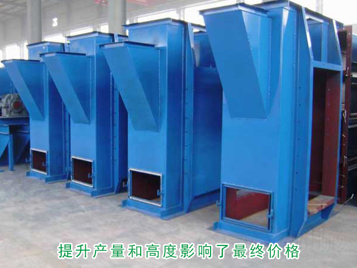 斗式提升機(jī)根據(jù)客戶不同的提升高度與產(chǎn)量需求價格也是不同的,提升高度越高其采用的鋼材長度與厚度也相應(yīng)增長增厚,提升產(chǎn)量越大所選擇的型號也就相應(yīng)越大,所以不同大小的提升產(chǎn)量與高度影響了型號的選擇進(jìn)而影響了終價格。