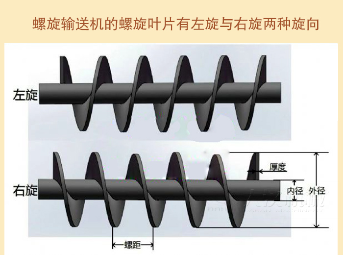 (2)螺旋輸送機的螺旋葉片有左旋與右旋兩種旋向。