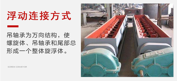 各傳動部位均采用浮動連接方式,吊軸承為萬向結構,使螺旋體、吊軸承和尾部總形成一個整體旋浮體,在一定范圍內(nèi)可以輸送阻力自由旋轉(zhuǎn)避讓,不卡料,不堵料。