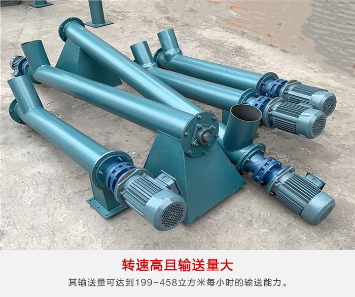 (2)傾斜螺旋輸送機的輸送量大,其輸送量可達到199-458(m3/h)的輸送能力,的同時螺旋輸送機的轉速也相對較高、其特別適用于傾斜和垂直輸送的輸送角度。