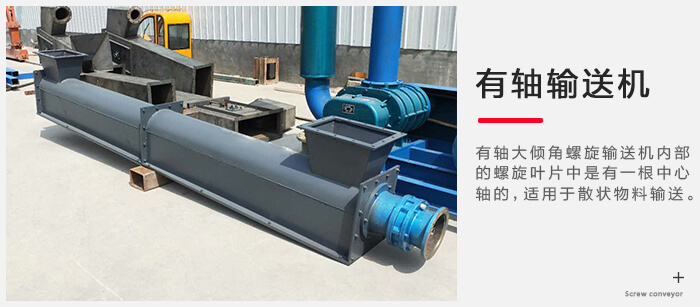 從內(nèi)部構(gòu)造來說,有軸大傾角螺旋輸送機(jī)內(nèi)部的螺旋葉片中是有一根中心軸的,這根中心軸可以幫助輸送機(jī)提升效率且防止物料堆積滑落。其適用于散狀物料的輸送。