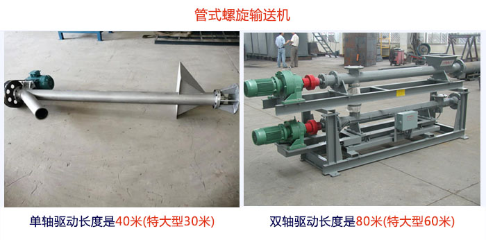 管式螺旋輸送機(jī)單軸驅(qū)動(dòng)長(zhǎng)度是40m(特大型30m),雙軸驅(qū)動(dòng)長(zhǎng)度是80m(特大型60m),長(zhǎng)度劃分是每一檔0.5m,可根據(jù)自身需求選擇。