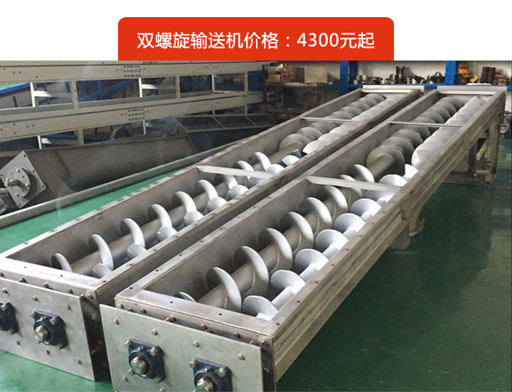 雙螺旋輸送機依靠兩根螺旋旋轉(zhuǎn)輸送體積大,流動相差的物料,其價格主要與螺旋軸結(jié)構(gòu),材質(zhì),型號等不同存在差異。