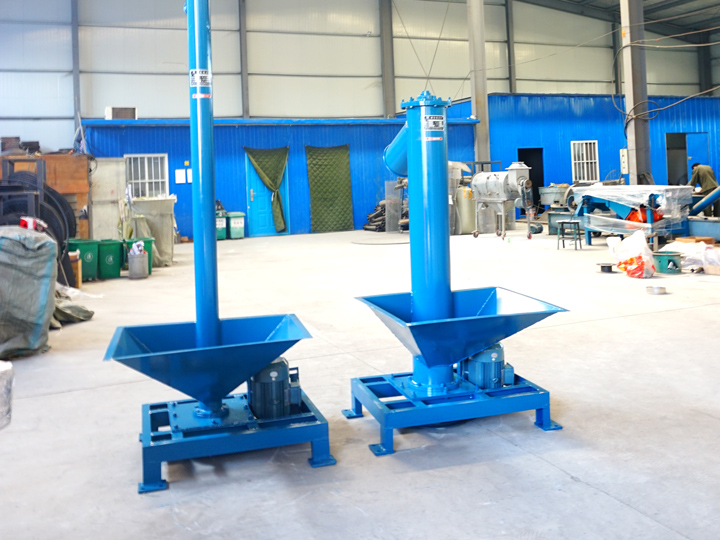 立式螺旋輸送機(jī)由水平進(jìn)料螺旋和垂直喂料螺旋組成。