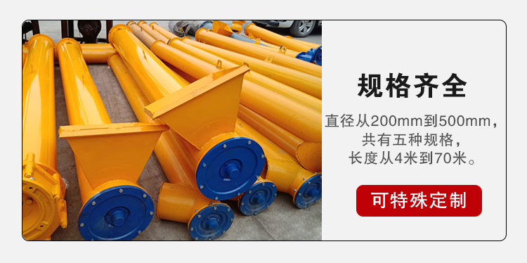 螺旋直徑從 200 毫米到 500 毫米,共有五種規(guī)格,長度從 4 米 到 70 米 ,每隔 0.5 米一檔,選型時符合標準公稱長度,特殊需要可在選配節(jié)中另行提出。