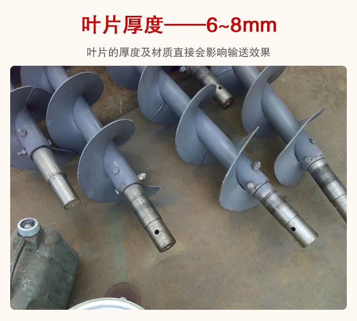 管型螺旋輸送機是依靠螺旋葉片的推力來實現(xiàn)對物料的輸送機的,所以葉片的厚度及材質直接會影響輸送效果,葉片厚度一般在6~8mm左右,也可以根據(jù)物料的耐磨程度來加厚,這些直接與設備的使用壽命掛鉤的,所以用戶在選型時要特別注意這一點。